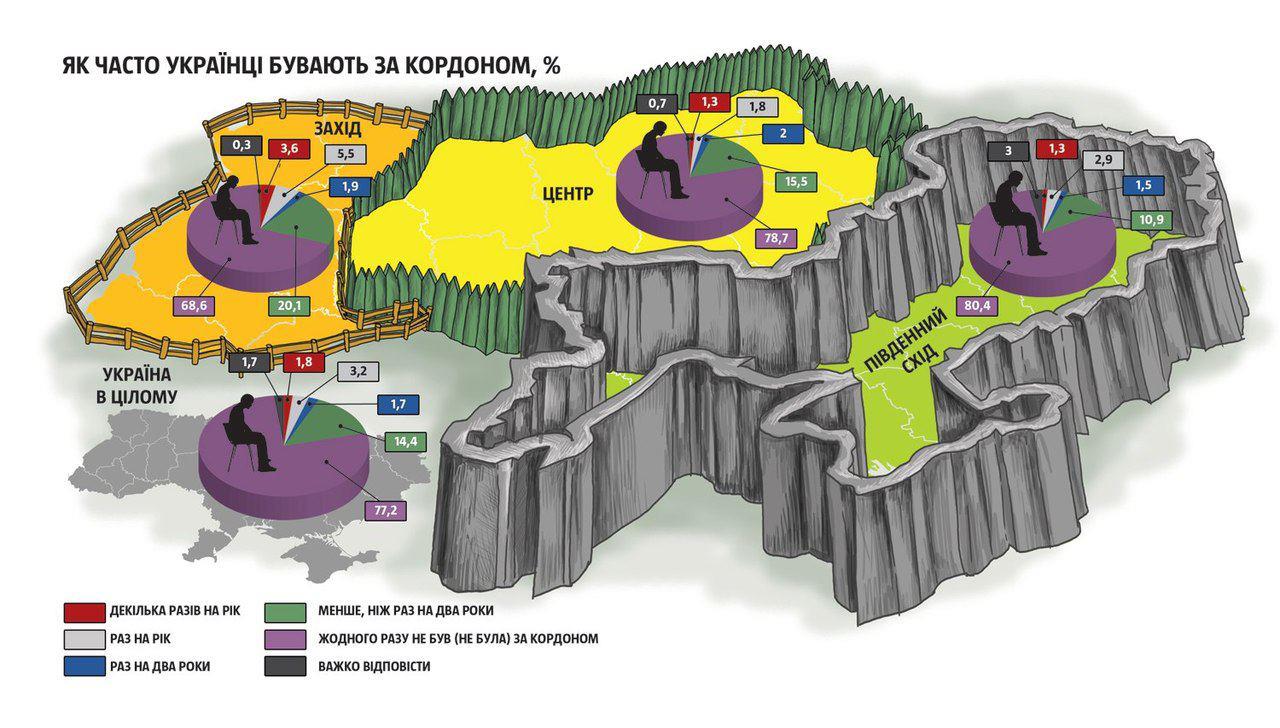 It was a staggering revelation for me that almost 8 people out of every 10 have never been abroad in their life! Even more, another poll reveals that 37% of people never travelled outside their region (county) within Ukraine!