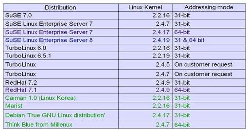 Основные дистрибутивы для S/390 и zSeries -- это Red Hat, SuSE и