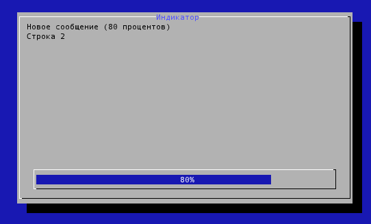 $DIALOG --title "Индикатор" --gauge "А вот пример простейшего индикатора" 20 70 0