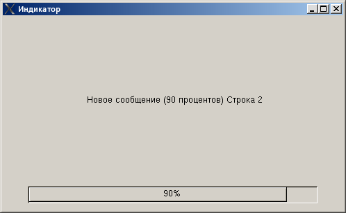 Особенность реализации индикатора заключается в том, что программа dialog получает данные через конвейер от кода, который заключён внутри круглых скобок. Есть два момента, на которые необходимо обратить внимание. Первый -- это обязательное использование переменной $COUNT. Именно из неё dialog/Xdialog считывает текущее значение индикатора. При этом желательно, чтобы значение переменной колебалось в диапазоне от 0 до 100. Второй -- это использование строк вида "XXX" в качестве ограничителей сообщения, выводящегося на экран (см. рисунок 9, 10)