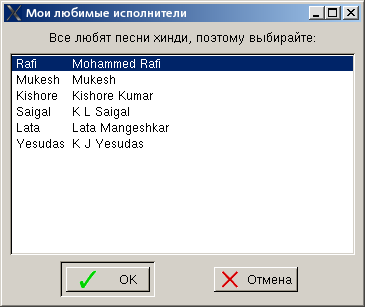 $DIALOG --clear --title "Мои любимые исполнители" \