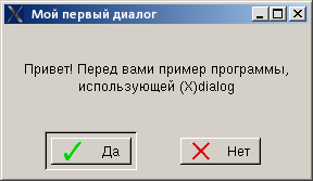 --yesno "Привет! Перед вами пример программы,\nиспользующей (X)dialog" 10 40