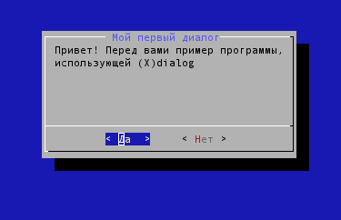 Теперь программа ждёт пользовательского выбора. В зависимости от того, нажмёте кнопку "Да" или "Нет", или нажмёте клавишу Escape, переменная командного интерпретатора $? будет содержать код завершения программы, который можно так или иначе обработать.